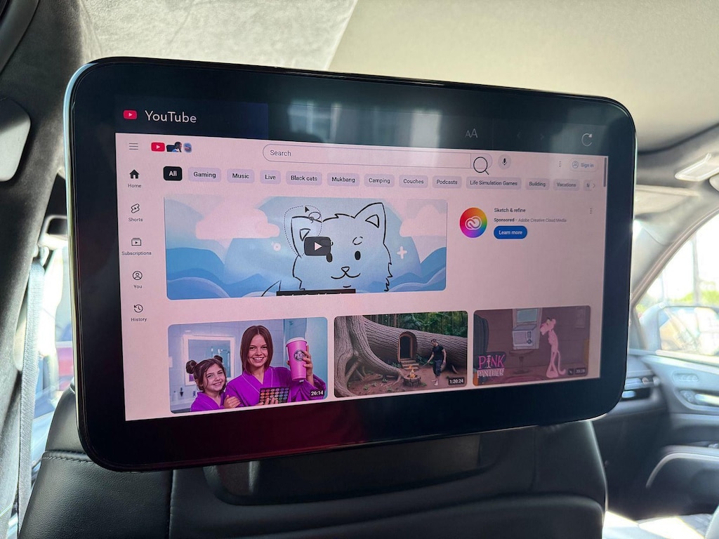 Rear Seat Entertainment system includes dual independent rear seat-mounted 12.6 diagonal color-touch LCD HD screens, 2 HDMI input ports on the back of the center console, two 2-channel Bluetooth headphones; compatible with other Bluetooth headphones